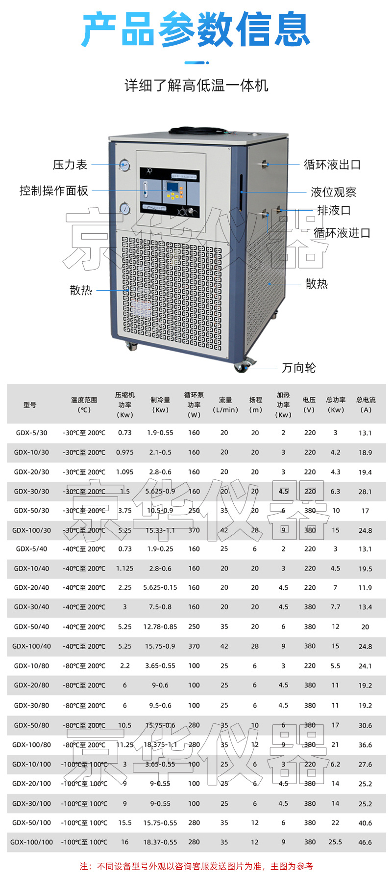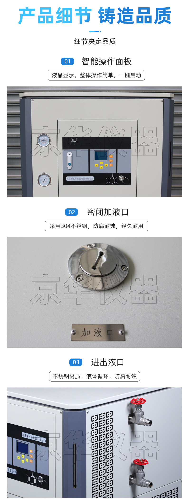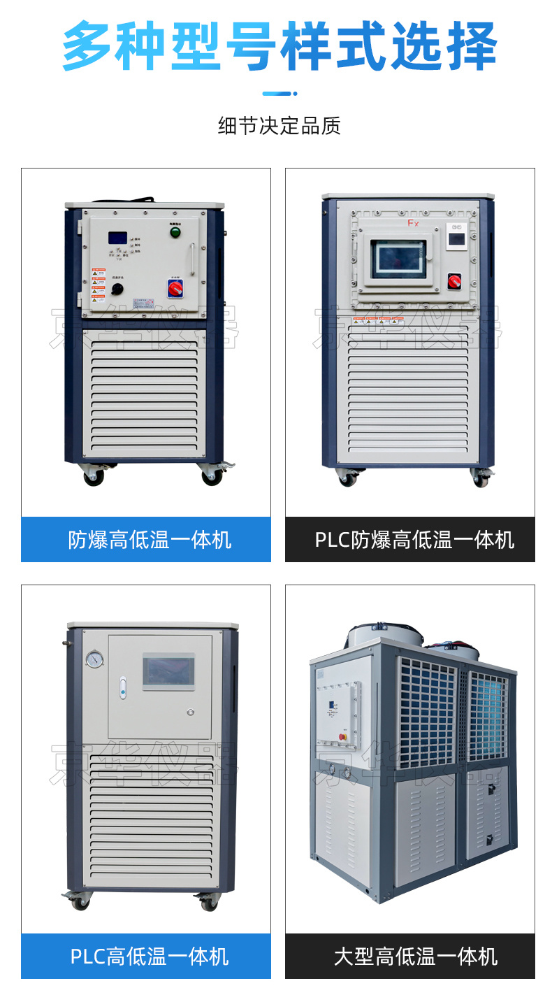 高低溫一體機廣泛適用于大專院校、環保、生化、醫療、化工、科研等領域。產品具有結構合理、操作簡便、穩定性能好等特點,是實驗中試的理想設備。隔離式電器控制箱,延長電器使用年限,管路防爆裝置,內置**保護低噪音,耐高溫防腐防銹,獨特的加熱設計,省電耐用適合不同溫控場所使用。